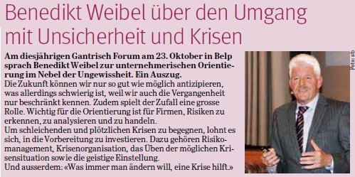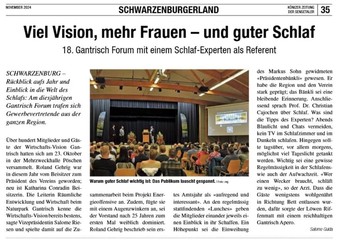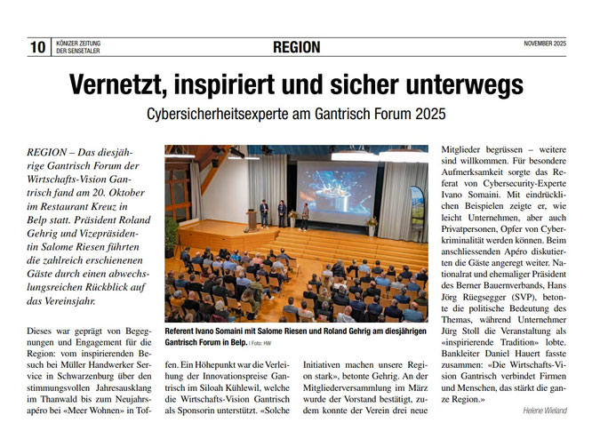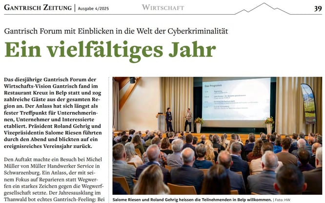 Über hundert Mitglieder und Gäste der Wirtschafts-Vision Gantrisch hatten sich am 23. Oktober in der Mehrzweckhalle Pöschen versammelt, wo das diesjährige Gantrisch Forum stattfand. Seit 2006, mit Ausnahme des Pandemiejahres 2020, gehört es zum Gantrisch-Herbst dazu wie zum Längenberg der Blick aufs Nebelmeer.
